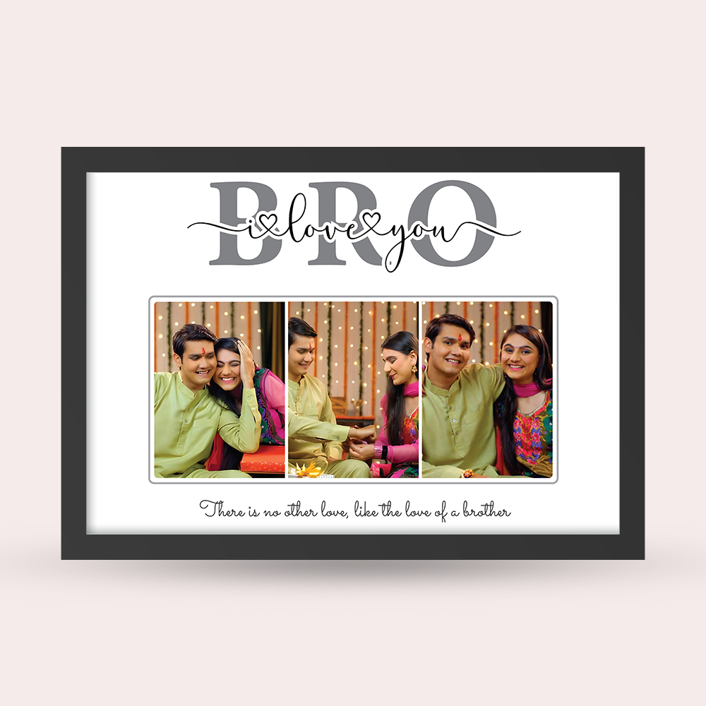 Celebrate the unbreakable bond you share with your brother with our Personalized Photo Frame for Brother. This unique keepsake is designed to capture and display your most cherished memories in a stylish and meaningful way. With the heartfelt message “BRO-I love you” prominently featured, this photo frame is the perfect blend of sentiment and style. Whether it’s a gift for Raksha Bandhan, a birthday, or just to show your love, this frame is an ideal way to cherish your special moments together.